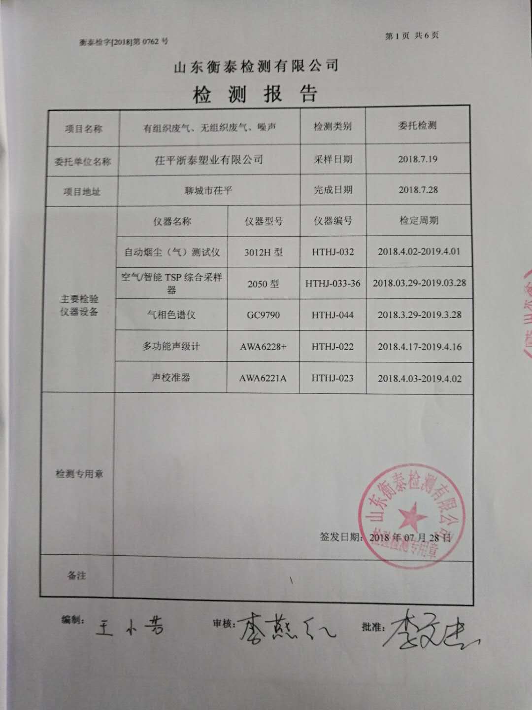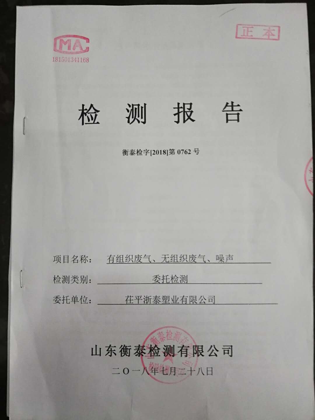 茌平浙泰塑业有限公司有组织废气、无组织废气、噪声验收报告