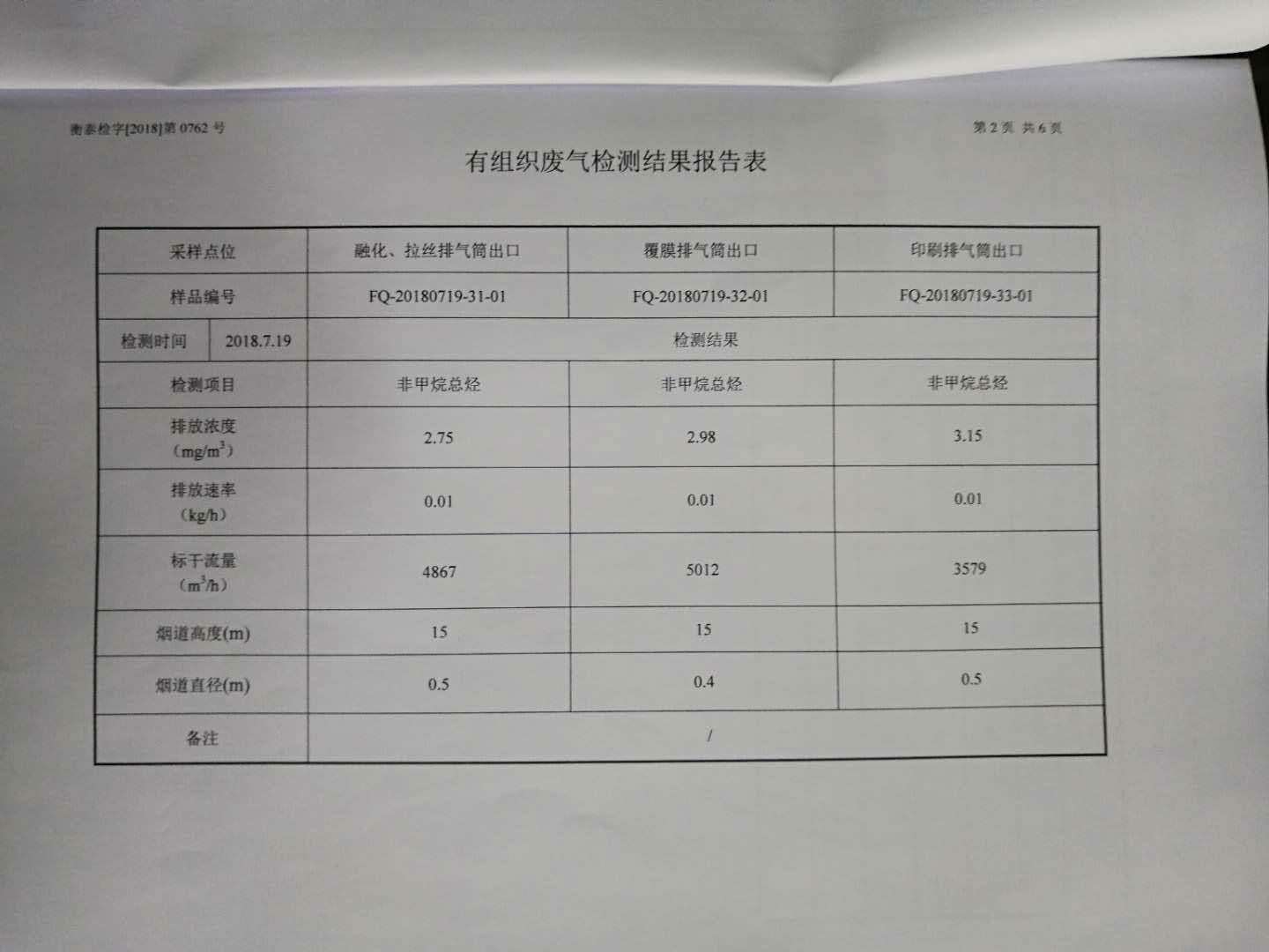 茌平浙泰塑业有限公司年产5000万条塑料编织袋项目竣工环境保护验收监测报告公示