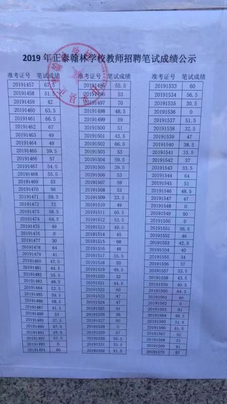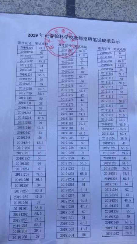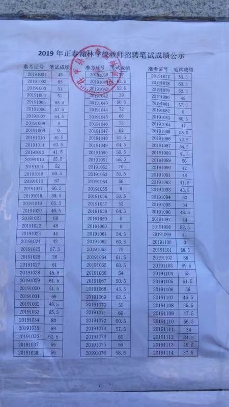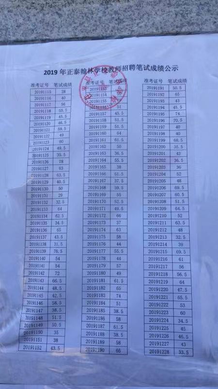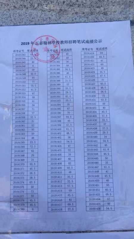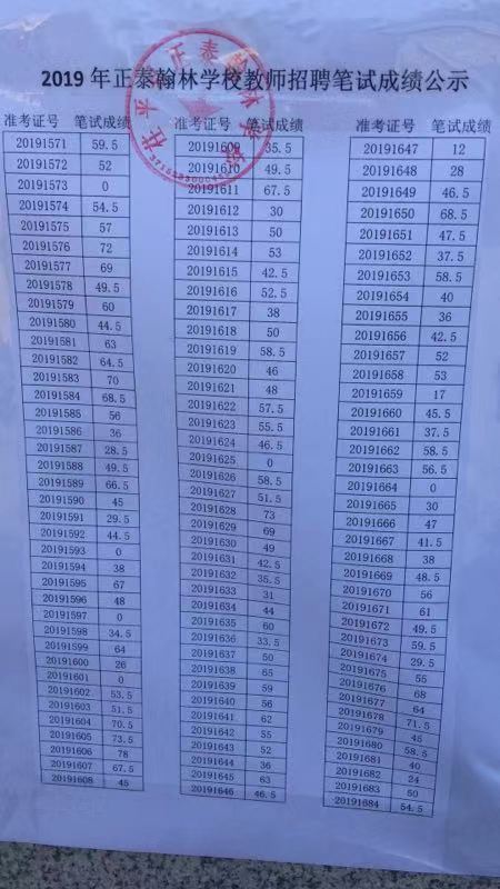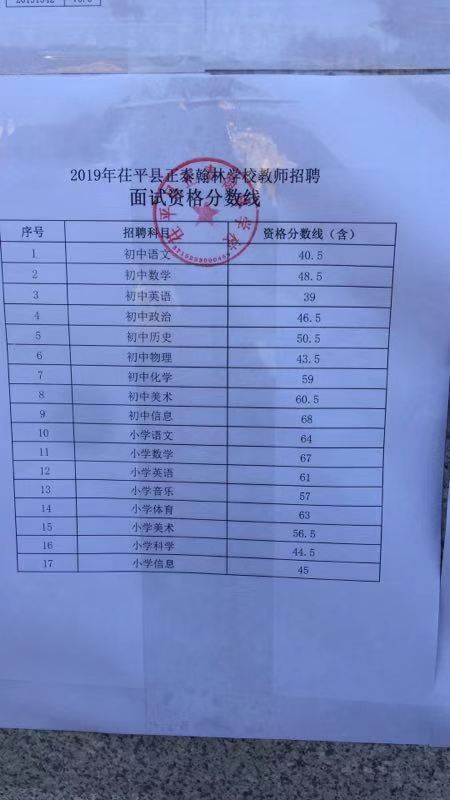 2019年茌平县红足666814旧版翰林学校人事代理教师招聘笔试成绩公示