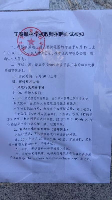 2019年茌平县红足666814旧版翰林学校人事代理教师招聘面试成绩公示