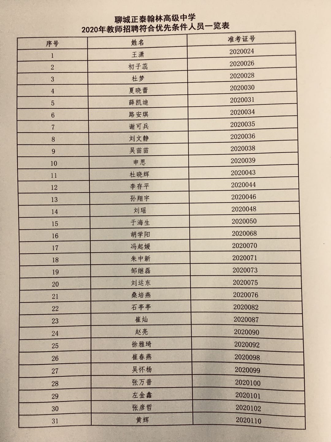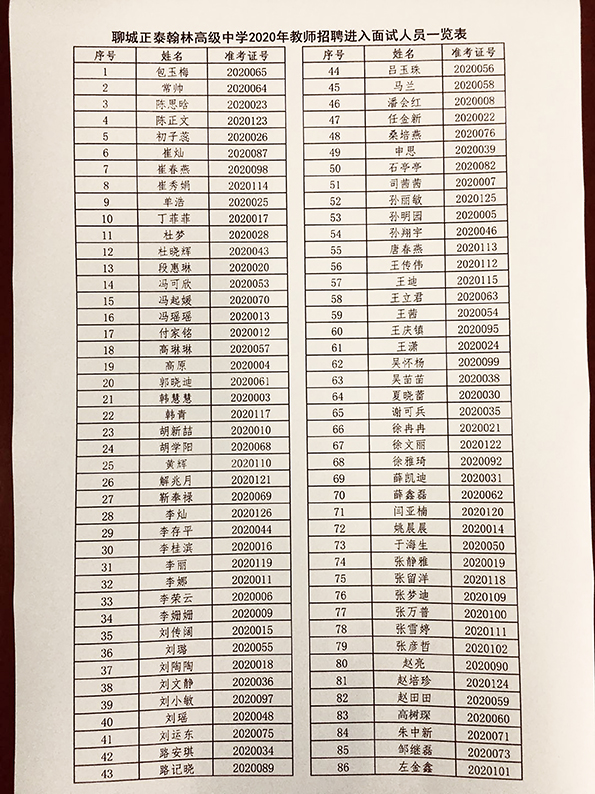 现予公布聊城红足666814旧版翰林高级中学《进入面试环节人员一览表》、《笔试成绩一览表》、《符合优先条件人员一览表》,请进入面试环节考生在本网站查询关于面试相关事项准备面试。